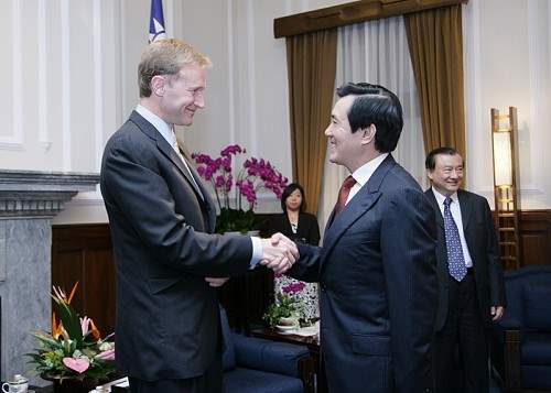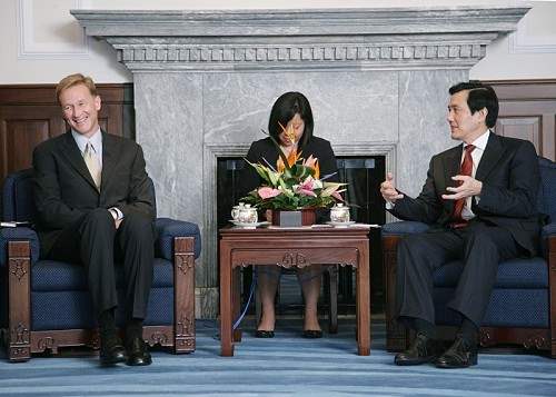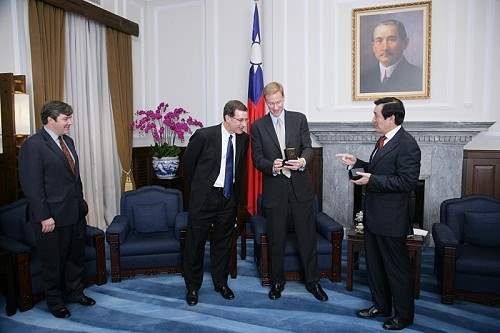 美商康寧公司董事長暨執行長魏文德上午是由經濟部部長尹啟銘陪同,前來總統府晉見總統。