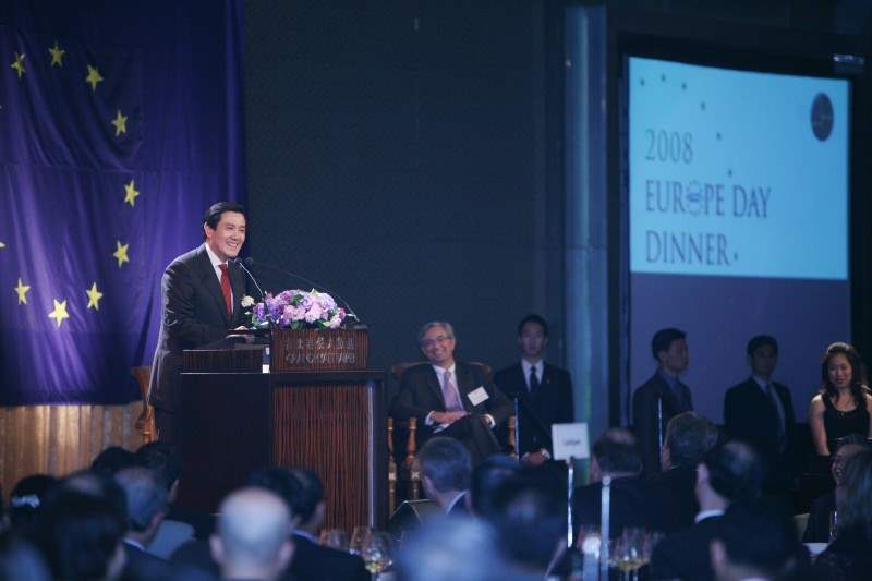 馬英九總統今天晚間出席歐洲商會「歐洲日晚宴」,除祝賀歐洲商會成立20週年紀念,並感謝歐洲商會與所有成員長期以來促進台灣與歐洲各國雙邊經貿往來與實質友好關係的諸多貢獻。