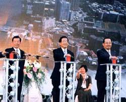 高雄市這幾年來,大家可以發現到,在謝市長的主政之下,城市的文化風貌變得更為美麗,改變了高雄過去高大煙囪聳立以及煙塵蔽日的刻板印象。從地方公共建設的成果,到城市地景的轉變,還有阿扁剛剛參加的愛河全線通水大典,看到愛河周邊的水岸風情,更呈現出海洋城市溫柔婉約的一面,在在提供了各縣市政府,城市經營的參考典範。