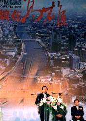 今天非常榮幸來到台灣的海洋首都-高雄,參加內政部委託主辦的「全國城鄉風貌觀摩展」。藉這個機會,全國民眾可以瞭解高雄海洋城市的特色,以及高雄市在文化經濟建設上突飛猛進的轉變。這是我們南台灣的盛事,更是我們高雄市民的驕傲。阿扁在此,要對謝市長以及各位市府的工作同仁,表示恭賀及最高的敬意和最高的肯定之意。