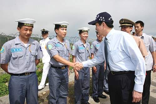 馬英九總統今天上午由國防部長陳肇敏、參謀總長霍守業陪同,前往馬祖、東引地區慰勉駐守官兵的辛勞。