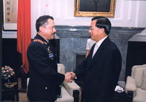陳總統水扁先生今天下午接見薩爾瓦多共和國國防部長馬丁尼斯中將(Martinez Varela)除歡迎他再度來華訪問外,並對他在促進兩國邦誼的付出與貢獻表達誠摯謝意。