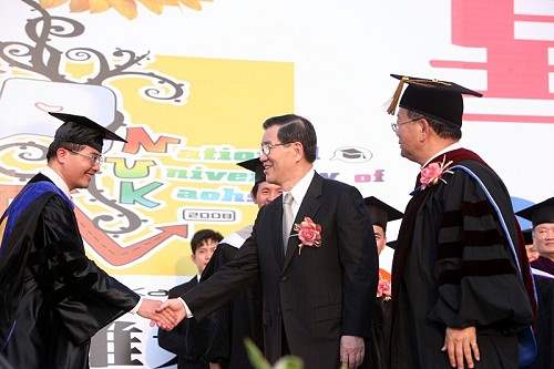 蕭萬長副總統今天下午專程南下高雄參加國立高雄大學畢業典禮,致詞稱許高雄大學創校以來的傑出表現,並勉勵畢業學生在知識經濟時代除了終身學習與創新思維以厚植競爭力,也要兼顧品德的培養,對國家、社會有所貢獻。