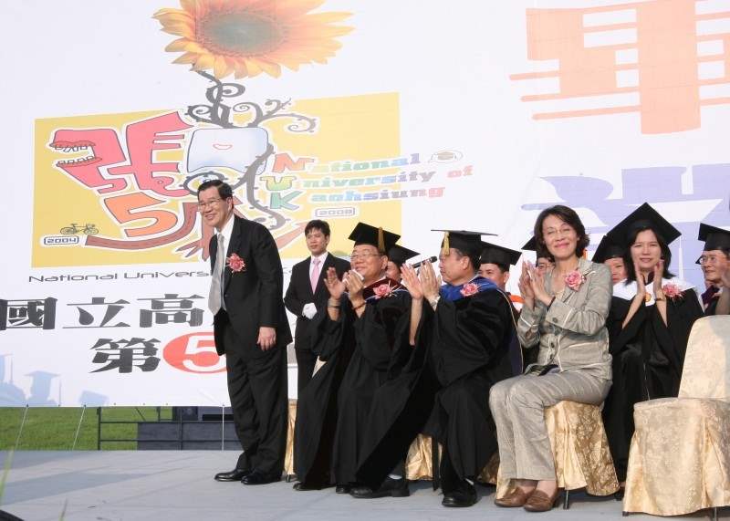 副總統表示,他非常高興能出席國立高雄大學第五屆的畢業典禮,事實上,今天邀請他出席的學校很多,而他選擇來到這裡,是因為他與高雄大學有很深的感情,高雄大學建校是他在行政院長任內所做的決定,當時教育資源非常緊縮,在地方的積極要求及立法委員黃昭順的極力爭取下,終於促成了高雄大學的成立。