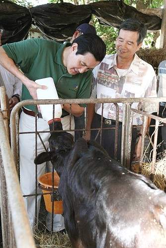 離開紅葉國小,總統上午也前往拜訪初鹿牧場簽約酪農林鶴田先生。總統在牧場學習餵食小乳牛,並參觀牛舍,對於林鶴田等農家所提有關增加牧草種植面積、農業機械補助、天然肥料堆肥等問題,總統指示在場的農委會官員研究或協調政府部門協助解決。中午,總統並參觀原生應用植物園。