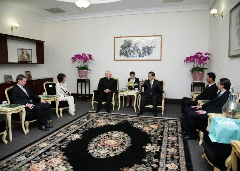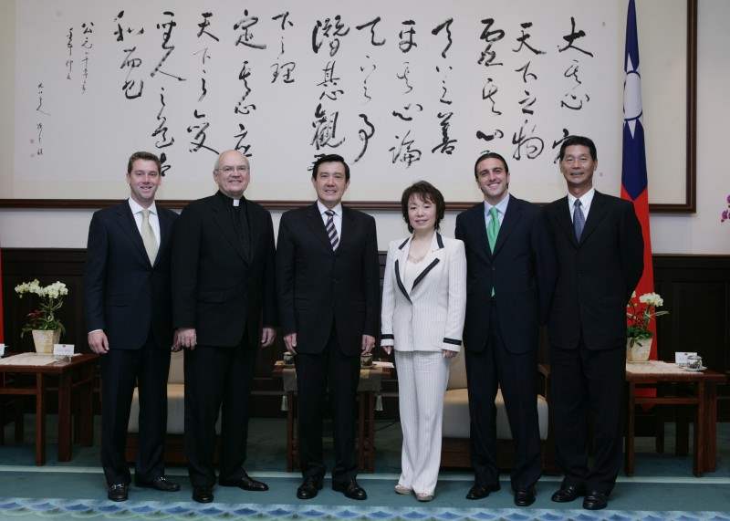 紐約聖若望大學校長哈林頓、副校長兼亞洲學院院長Cecilia S. Chang、該校幕僚長Bobert Wile,上午由華視文化公司總經理鄧長富陪同,前來總統府晉見總統與副總統。
