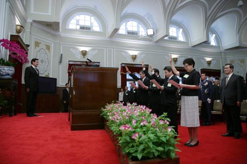 宣誓人員為:行政院大陸委員會副主任委員劉德勳、張良任、傅棟成、國立故宮博物院副院長馮明珠。