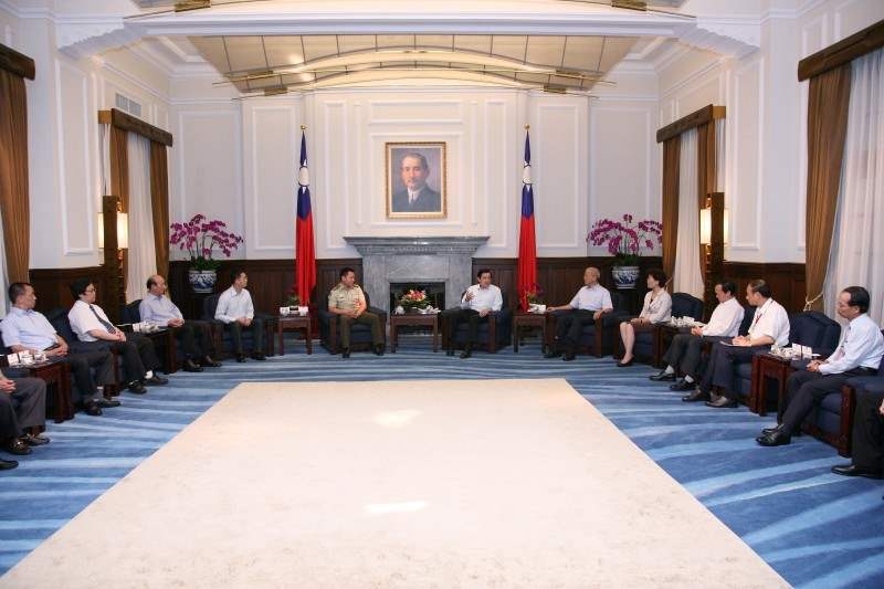 97年反毒有功人士及團體代表,上午由教育部長鄭瑞城、法務部長王清峰、行政院衛生署署長林芳郁、外交部次長侯清山陪同,前來總統府晉見總統,總統府副秘書長葉金川也在座。