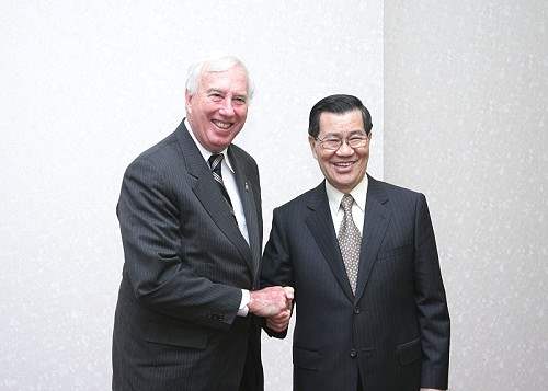 莫特校長感謝副總統能於繁重公務之際撥空接見,並對馬總統與蕭副總統所帶領的新政府表達由衷的祝賀之意。他說,馬里蘭大學與台灣學術界、學生有非常密切的往來與交流,以他個人而言,1990年時就曾造訪台灣,他的父母親更曾於1970年代在台灣從事臨床醫學的研究工作,他盼望未來馬里蘭大學能和台灣在學術領域與其他方面形成更堅實與緊密的往來。