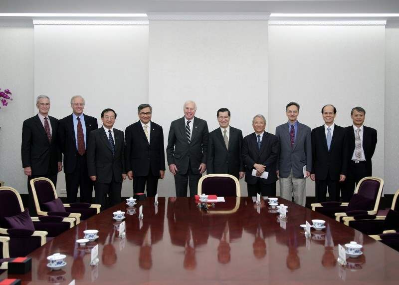 美國馬里蘭大學訪問團,包括校長莫特博士、劉全生博士、Saul Sosnowski博士、Cheng-I Wei博士、Raymond Miller博士,上午由曾志朗政務委員、朱雲鵬政務委員及教育部次長呂木琳陪同,前來總統府晉見副總統。