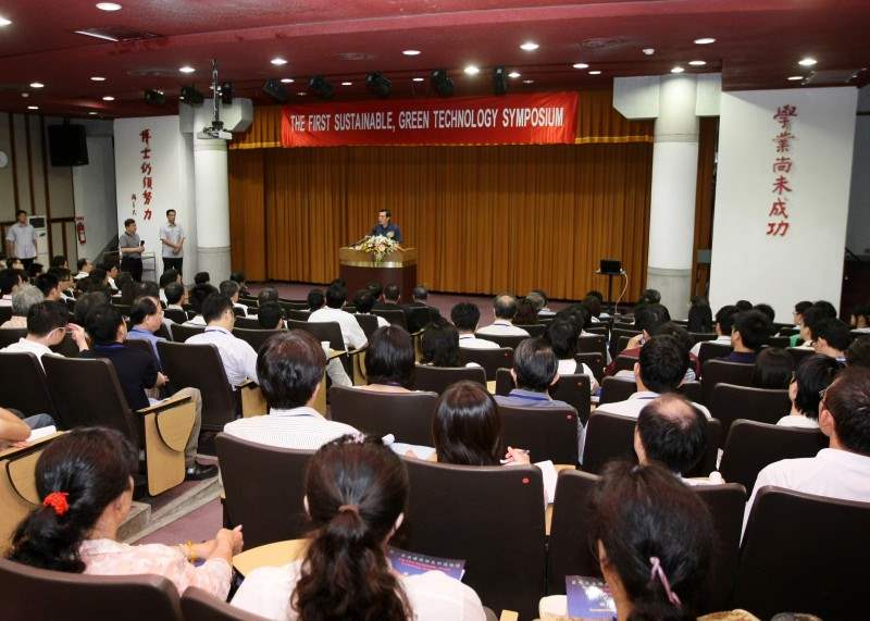 馬英九總統今天上午前往台灣大學應用力學研究所國際會議廳,出席第一屆永續(綠色)科技研討會開幕式,並應邀致詞。