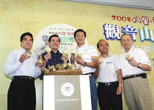 隨後,總統前往五股鄉出席觀音山綠竹筍推薦記者會並主持拍賣,為觀音山綠竹筍代言,拍賣所得金額將移作八里、五股地區貧困學童營養午餐之用。