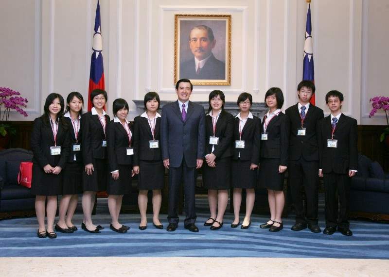 參加美國第59屆英特爾國際科技展覽會(ISEF)代表團蘇意涵(英特爾最佳青年科學家獎、化學科首獎及一等獎,北一女中)等人,上午由領隊教育部次長呂木琳、副領隊台灣科學教育館館長陳益興陪同,前來總統府晉見總統,總統府副秘書長葉金川也在座。其他團員還包括:崔德昕(物理科二等獎、美國物理教師學會及美國物理學會三等獎、聯合科技公司獎,新竹女中)、王韻筑(物理科三等獎,北一女中)、莊迪喬(植物學科四等獎、美國園藝科學學會一等獎,高雄女中)、江盛浩(科學工業園區實驗高中)、林子瑜(台南女中)、呂京穎(北一女中)、陳亭妤(北一女中)、陳冠華(台南一中)、鄧以柔(台南女中);輔導教授暨特別獎評審委員:雷添壽教授(台灣科技大學工程學系)、全任重教授(清華大學數學系)、黎耀基教授(大葉大學生物科技暨資源學院);指導教師葉佐欽(科學工業園區實驗高中)、代理主任馮桂莊(台灣科學教育館)、輔導人員周茜芸。