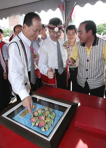 副總統在水蜜桃季活動致詞時則特別穿上原住民服飾,與所有原住民果農朋友站在一起,為他們加油打氣,副總統表示,今天來到活動現場,主要是為辛苦的果農朋友帶來問候,尤其在山區栽種水果,更是需要勉勵與推廣,讓更多國人認識並品嚐到山區水果的甜美。