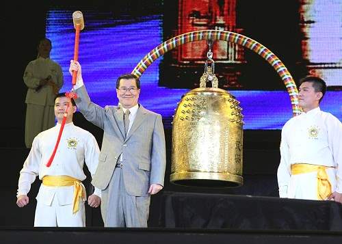 蕭萬長副總統今天下午出席在林口巨蛋體育館舉辦的「太極門2008全球護地球感恩惜福音樂會」,並主持「世界之愛、和平之鐘」鳴鐘典禮,祝願台灣常保美麗、地球永遠青春。
