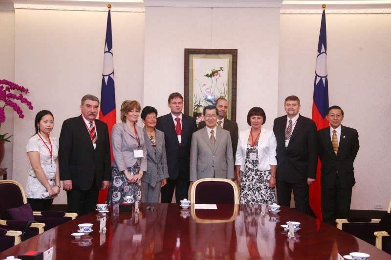 波蘭國會友台小組副主席HANNA ZDANOWSKA、JOANNA SENYSZYN、眾議員ARKADIUSZ MULARCZYK、BOZENNA BUKIEWICZ、LESZEK DEPTULA等人上午由外交部次長林永樂及華沙駐台北貿易辦事處總代表史崔瑞烏斯基(WSIEWOLOD STRAZEWSKI)陪同前來總統府晉見副總統。