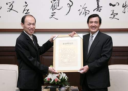 馬英九總統今天上午在總統府接見耶穌基督後期聖徒教會(摩門教)台灣教會領袖仲國強長老一行,對教會在台灣所付出的貢獻與努力,表達最高的敬意與感謝之忱。