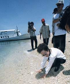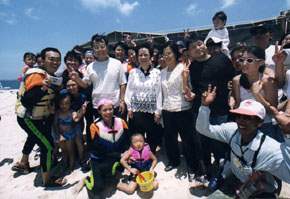 副總統也下船踏上澎澎灘,受到遊客熱烈歡迎,紛紛要求與副總統合影,看到海灘上遊客戲水聚集情形,副總統也為澎湖縣感到高興,不過,她認為,觀光客回流情況仍不夠,她請遊客回去後,一人再拉十人前來。登船前,她也觸摸海水,親自感受澎湖海水的清澈與沁涼。