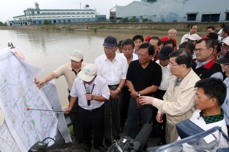 下午,副總統則來到梓官鄉典寶溪及視察岡山鎮大寮排水災情,對於民眾及鄉、村民代表提出的諸多問題,副總統一一仔細聆聽,也表示將把意見帶回,轉達行政部門,協助地方政府,完成相關的治水計畫,早日解決水患問題。