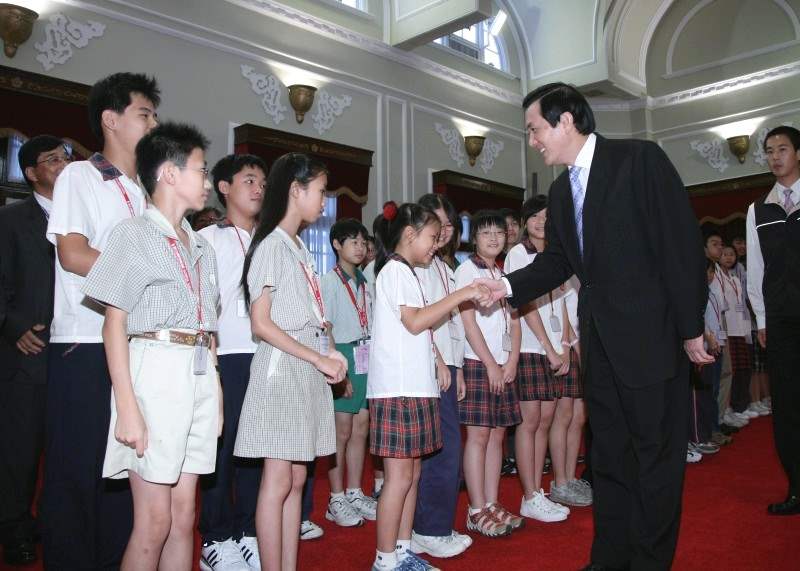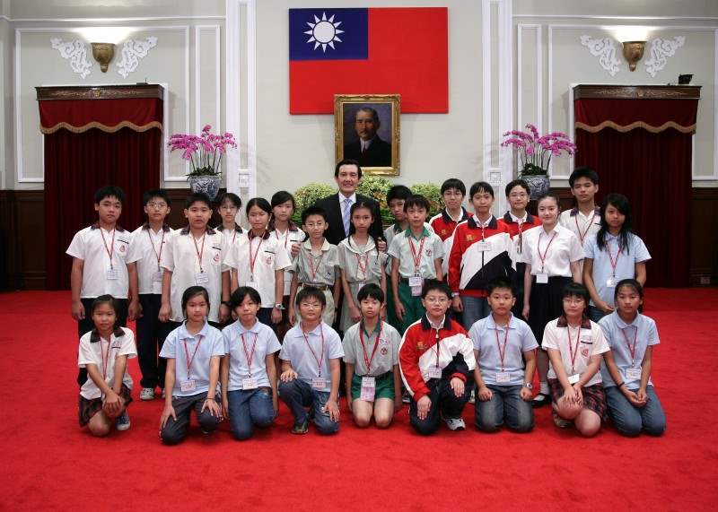 第48屆中小學科學展覽會各科組第一名同學下午由教育部長鄭瑞城陪同,前來總統府接受總統道賀。