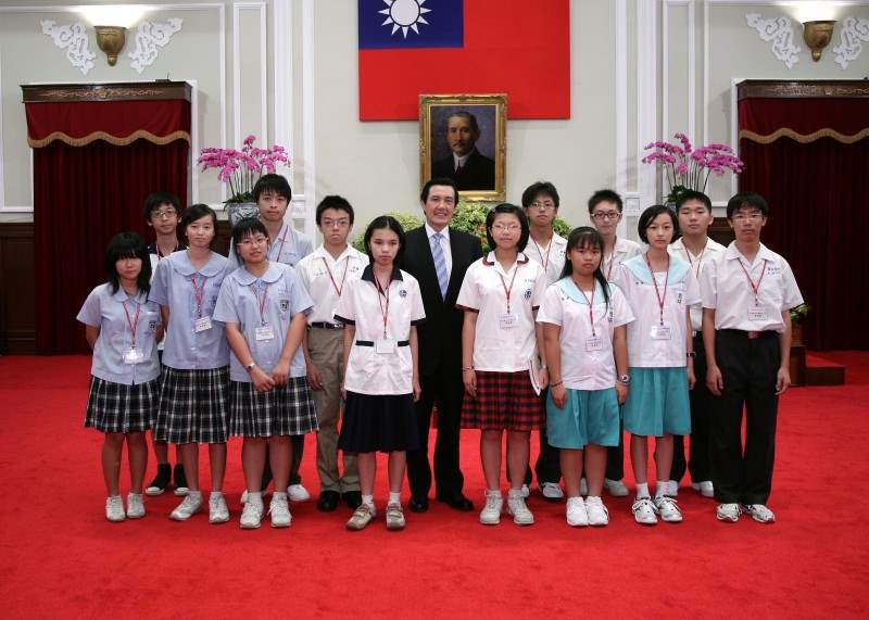 馬英九總統今天下午在總統府接見「第48屆中小學科學展覽會」各科組第一名同學,恭喜同學們在科展中的優異表現,並期勉大家日後秉持科學精神來思考、學習。
