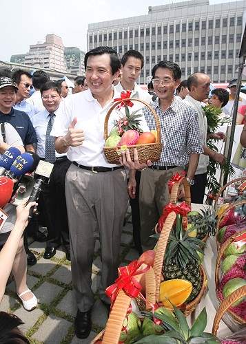 總統表示,在總統府前展示農產品,除肯定農業對台灣的貢獻外,也要推廣F4水果-楊桃、芒果、鳯梨及芭樂。台灣的農業不但是提供糧食的來源,也是永續發展、節能減碳的重要力量,因此,政府高度重視農業在台灣經濟及未來發展所扮演的重要角色。