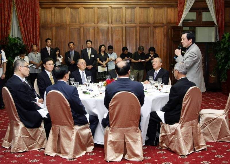 總統表示,政府這段時間在兩岸關係上持續採取開放措施,目的是希望改善雙方關係,達致兩岸的和平與繁榮。在經貿方面,希望讓企業在決策上有更大的空間,鬆綁與開放的目的不是鼓勵台商到大陸投資,而是希望藉由投資與經營環境的改善,讓台商有興趣回來台灣。兩天前行政院通過開放措施,已經有17家在香港上市的台商願意考慮回台,不一定是上市,可能是設立台灣存託憑證(TDR),讓股票能在兩個市場交易,這對雙方都有幫助,這些都是過去無法做到的。