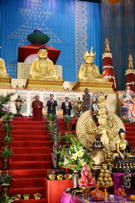 蕭萬長副總統今天晚間由內政部部長廖了以陪同出席在桃園巨蛋體育館所舉辦的靈鷲山第17屆「大悲周遍」水陸空法會,與心道大和尚共同捻香點燈,祈求世界和平、國家安定、社會繁榮。