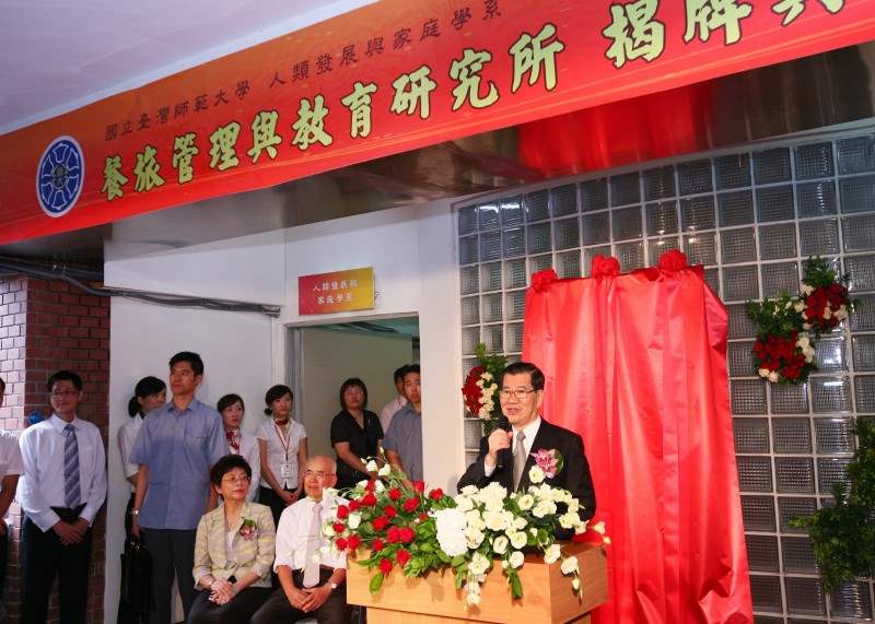 蕭萬長副總統今天上午出席「臺師大餐旅管理與教育研究所成立揭牌典禮」,期許研究所能為台灣觀光旅遊業培養更多優秀人才,為國人及全世界旅客提供更多精緻的服務。此外,副總統也與臺師大校長郭義雄及交通部觀光局局長賴瑟珍等共同主持揭牌與切蛋糕儀式,慶賀研究所的誕生。