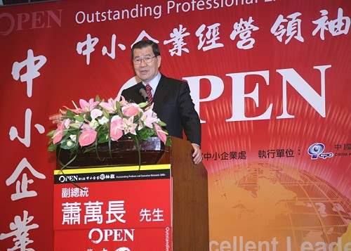 副總統指出,中小企業一直是台灣經濟發展的堅實基礎,政府也一直不遺餘力照顧中小企業,然而在面臨資金、人材與技術等問題時,如何開創永續發展的契機,中小企業仍然有一段路要走,尤其全球化風行草偃,企業界也承受許多新的挑戰,包括區域經濟整合以及生產、價值、供應鍊的模式形成,都使得彼此的競爭更為激烈,市場變化也隨之起伏,這些都是中小企業在拓展事業版圖時不得不面對的嚴竣課題。