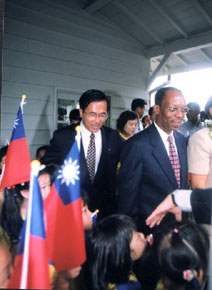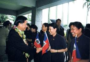 海地共和國總統亞里斯第德閣下暨夫人率團訪華,為表達誠摯的歡迎之意,陳總統水扁先生除於今天上午在中正紀念公園藝文廣場以隆重軍禮歡迎外,兩國元首也在總統府內進行晤談。下午,陳總統則陪同亞里斯第德總統暨夫人前往南投縣和彰化縣參訪。