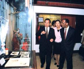 隨後,兩人也轉往彰化縣鹿港鎮參訪鹿港民俗文物館,對於館內所展出清朝中葉至民國初年各種食衣住行器物和民俗文物,亞里斯第德總統也在解說人員的說明下興致盎然的仔細觀賞,並頻頻詢問。
