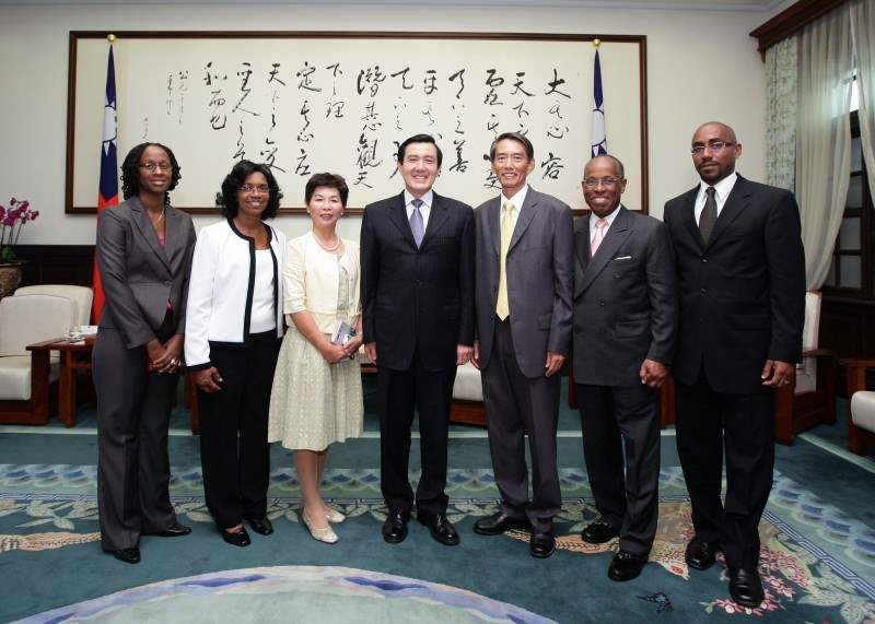 聖文森副總理兼外交部長史垂克伉儷一行,下午由外交部長歐鴻鍊陪同,前來總統府晉見總統,國安會副秘書長何思因也在座。