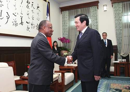馬英九總統今天下午在總統府接見聖文森副總理兼外交部長史垂克(Louis Straker)伉儷,代表我國政府歡迎訪賓遠道來訪。
