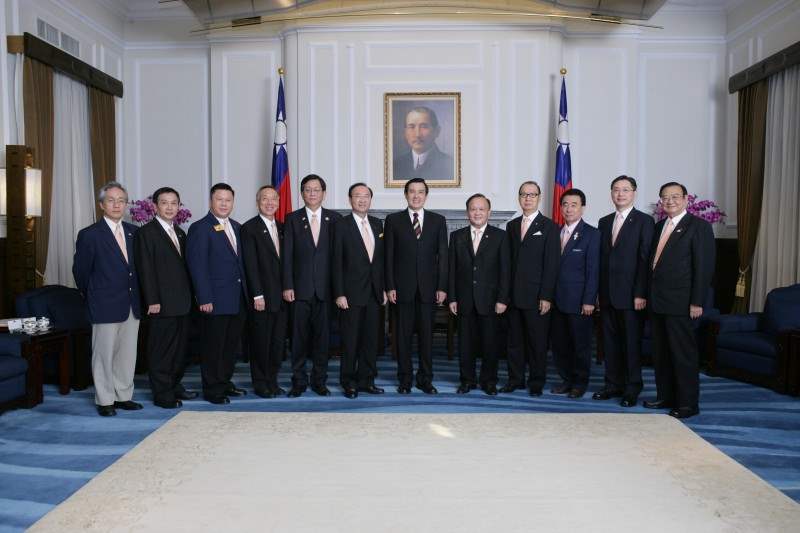 國際扶輪理事謝三連及台灣各地區總監一行,上午前來總統府晉見總統,總統府副秘書長葉金川也在座。