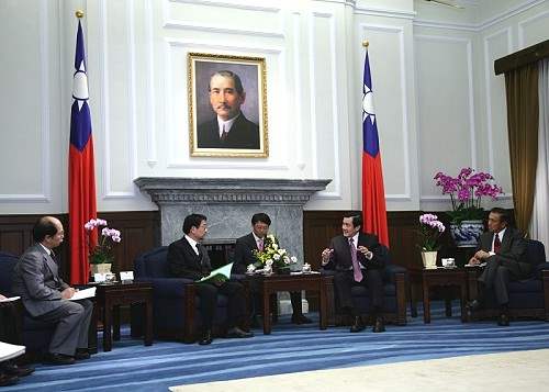 若林教授首先請教總統「外交休兵」的背後戰略思考,總統表示,要瞭解提出「外交休兵」的構想,首先不能忽略過去近60年兩岸在外交戰場的歷史。中華人民共和國於1949年成立,成立第1年約10餘國承認,以東歐為主,1971年我國失去聯合國代表權為一個轉捩點,尤其在1972年上海公報後,與中共建交的國家愈來愈多,1979年美國承認中國大陸之後,與中共建交的國家顯著增加。兩年前,陳前總統希望以台灣的名義成為聯合國的會員國,不但遇到阻礙,多數邦交國也不支持。因此我國的外交必須要採取不同的策略,才能緩和台灣在國際社會遭遇的困難。