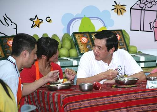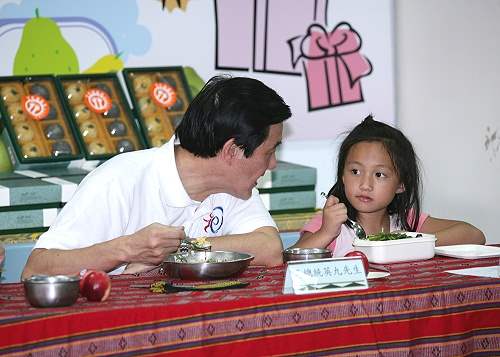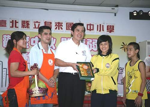 馬英九總統今天午間前往台北縣烏來國民中小學出席「買月餅、送愛心」-歡度佳節關懷弱勢、帶動買氣、振興經濟秋節探訪活動,除與學童們共進營養午餐,並偕同伊甸社會福利基金會學員致贈該校學童月餅禮盒及文旦,與大家提前歡度中秋佳節。