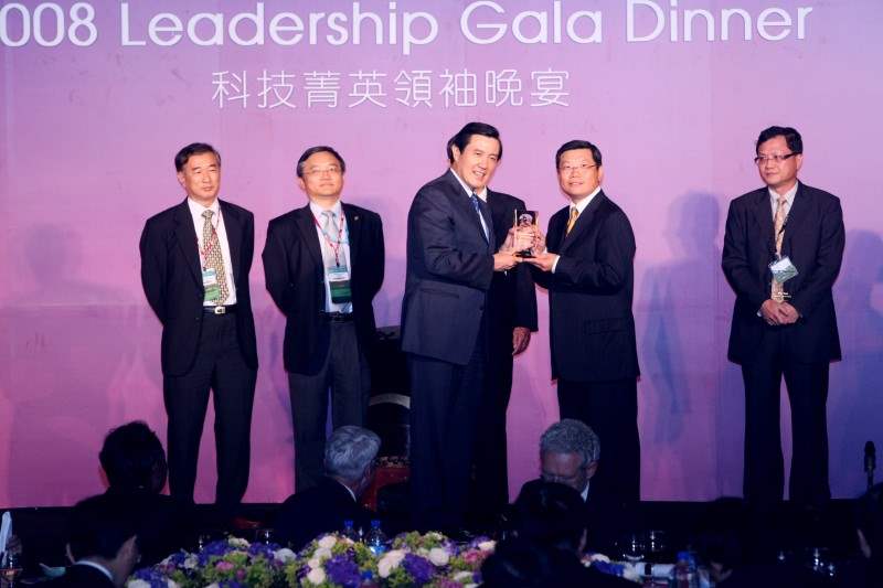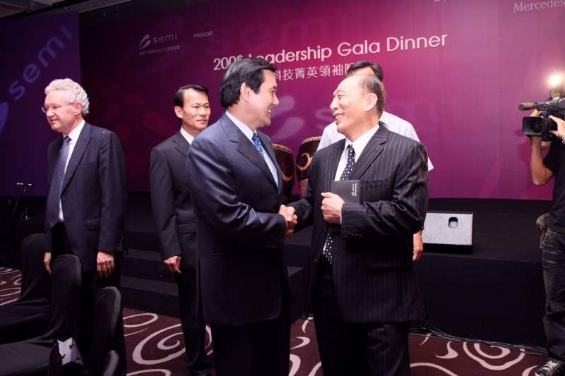 馬英九總統今天晚間在台北市出席2008科技菁英領袖晚宴,除應邀致詞外,並頒獎給SEMI台灣地區委員會新任正副主席及會展有功人員。