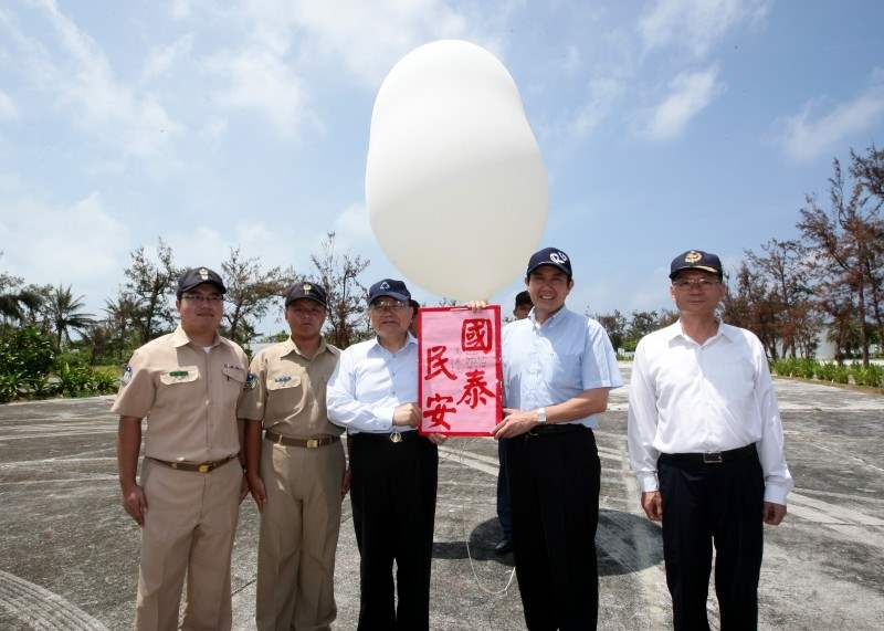 離開東沙島之前,總統特地前往東沙大王廟參香,並施放由總統以中、英文親筆簽名、掛有「國泰民安」字樣的探空氣球。