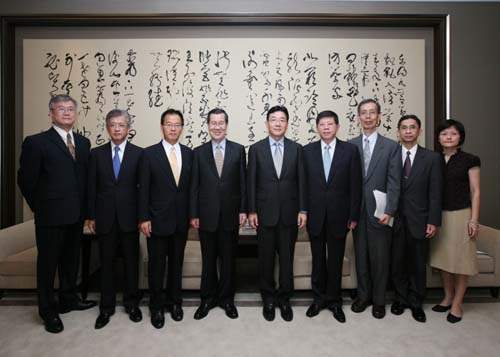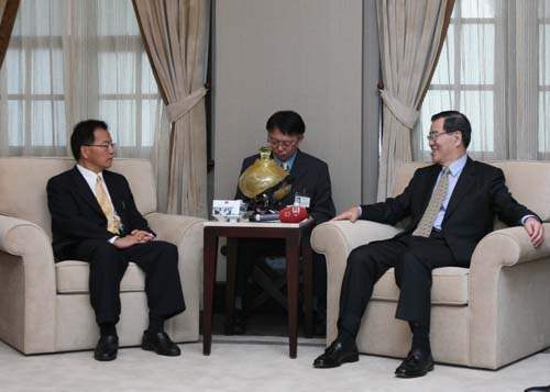 訪賓則感謝副總統撥冗接見,並對我國政府給予在台日本人的協助,表達肯定與感謝之意。訪賓指出,目前歐盟與北美自由貿易區在國際間發揮強大的影響力,亞洲也要建立屬於自己的經貿聯繫網路,台灣與日本應該加強協調合作,在亞洲經濟扮演更重要的角色。