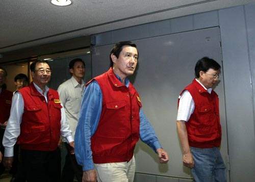 馬英九總統在中秋夜偕同行政院劉兆玄院長第三度視察中央災害應變中心,除關心辛樂克颱風最新動向外,也聽取目前災害發生情況及救災工作情形簡報,並慰勉工作人員的辛勞。