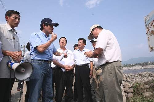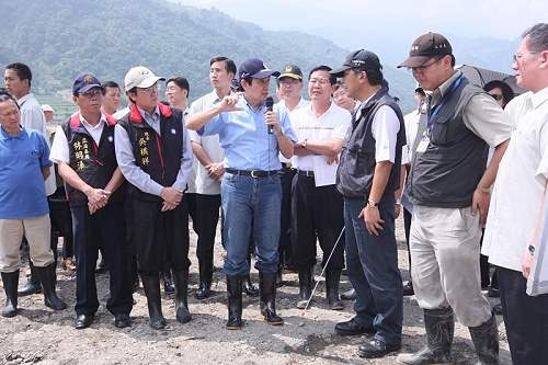總統也前往名間鄉新民村濁水溪堤防邊視察潰堤達340公尺的情況,在聽取經濟部水利署長陳伸賢的簡報後,總統指示,該用的經費不能省,水利署應以最快的速度以及可確保長期無虞的施工方法來重建堤防,以保障村民生命及財產安全,而該署對於全省其他溪河邊堤防或橋樑更應作總檢查,絕不能等到出問題後再來檢討。