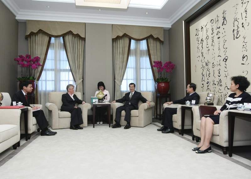 澳大利亞商工辦事處代表柯未名除感謝副總統撥冗接見,並表示,台灣的經貿發展是世界各國共同關注的焦點,目前台澳兩國在經貿、學術、文化等交流十分密切,未來她會繼續努力,加強雙邊合作關係。