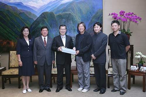 「四月望雨」音樂劇表演劇團團員包括:欣欣瓦斯公司董事長陳何家、總監製王偉忠、藝術總監楊忠衡、演員江翊睿、洪瑞襄及程伯仁等,上午前來總統府拜會副總統。