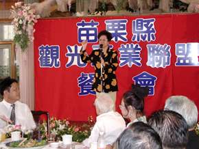 副總統在與該縣觀光產業聯盟座談和參觀客家庄時表示,此行聽到苗栗縣觀光產業聯盟已提出具體發展觀光的計畫,她要表達祝賀之意,她並期許該縣能迎合世界潮流,改善觀光產業的軟、硬體設施,她也請縣政府協助調查有意願與不動產業合作但能力不足的舊觀光業者資料,作為觀光產業聯盟盟主,她非常願意在中央轉達大家的意見,並協助促成相關業者的合作。