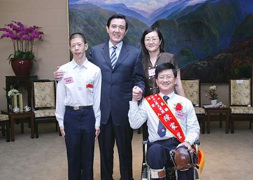 馬英九總統今天下午在總統府接見中華民國第11屆「大愛獎」傑出身心障礙者尊長得獎人,表彰得獎者對身心障礙者與社會的付出及貢獻。