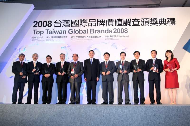 馬英九總統今天下午出席2008台灣國際品牌價值調查頒獎典禮,並在致詞後為今年的前20大價值品牌頒獎。