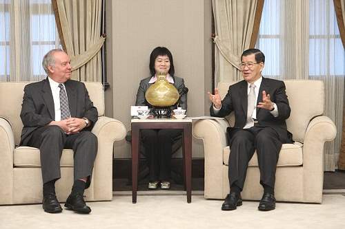 副總統也告訴訪賓,要吸引國內外資金,必須先開創一個有利的投資環境,對此,我國政府計劃由租稅改革開始,讓台灣擁有與鄰近國家相同的租稅競爭力,並能兼顧社會的公平正義,而在推動租稅改革工作中,政府將秉持「輕稅簡政」原則,讓外資、台資都能回來,一同為台灣奉獻心力。他請訪賓繼續支持台灣,將台灣視為營運重鎮之一,共同努力,共創雙贏榮景。
