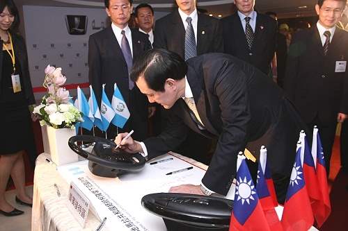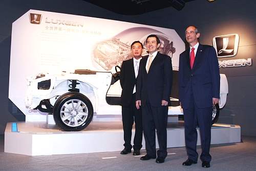 馬英九總統今天上午陪同瓜地馬拉共和國總統柯隆(Álvaro Colom Caballeros)參訪裕隆集團總部,並與國賓一同為國人研發的第一部智慧電動車Luxgen揭幕。