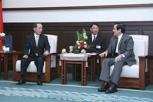 矢野薰社長上午由經濟部次長鄧振中陪同,前來總統府晉見總統,國家安全會議諮詢委員楊永明等也在座。